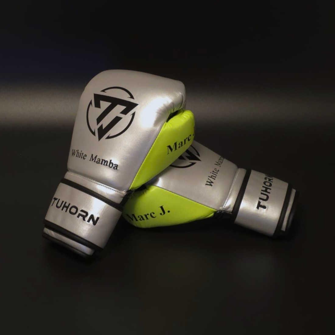 Du kannst deine eigenen Boxhandschuhe mit der Premiumqualität von Tuhorn herstellen. Du kannst deinen Namen oder Logos anbringen.